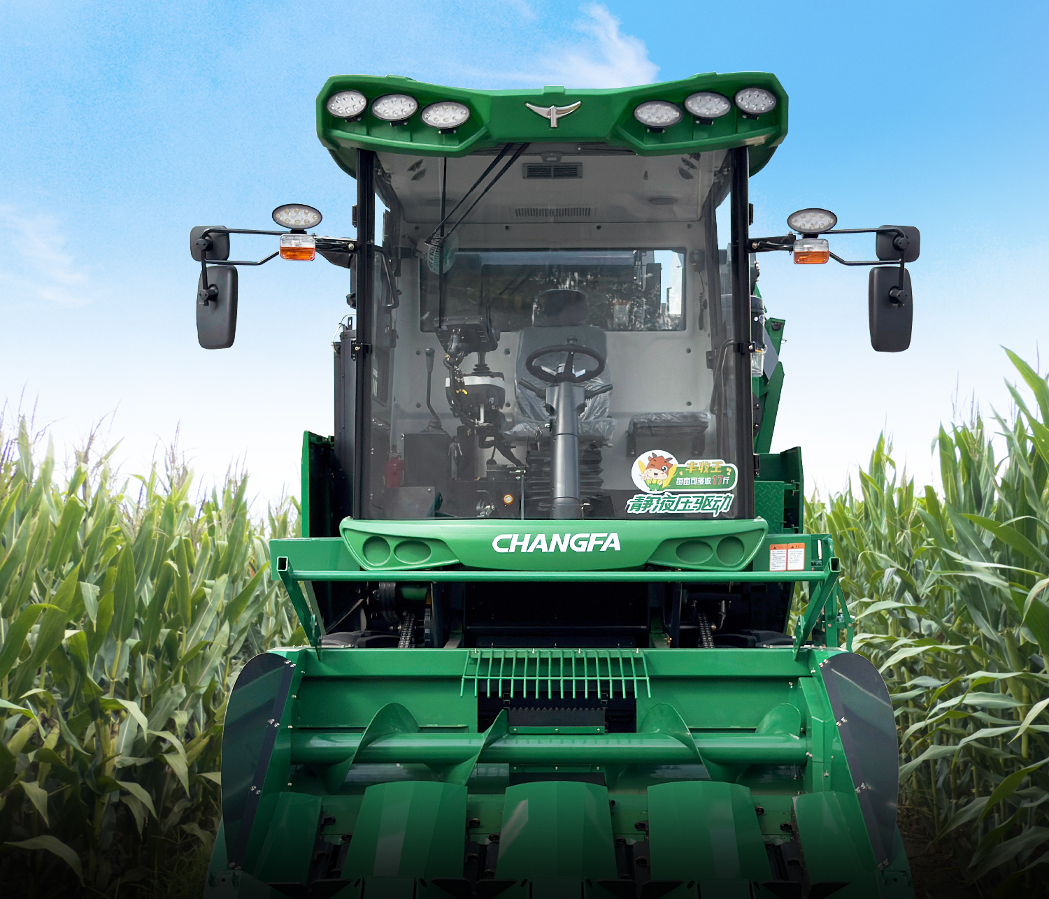 左右后视镜采用双镜片设计,视野更宽广。 配置8枚LED前工作大灯,亮度高、照射范围广,夜间作业更方便。