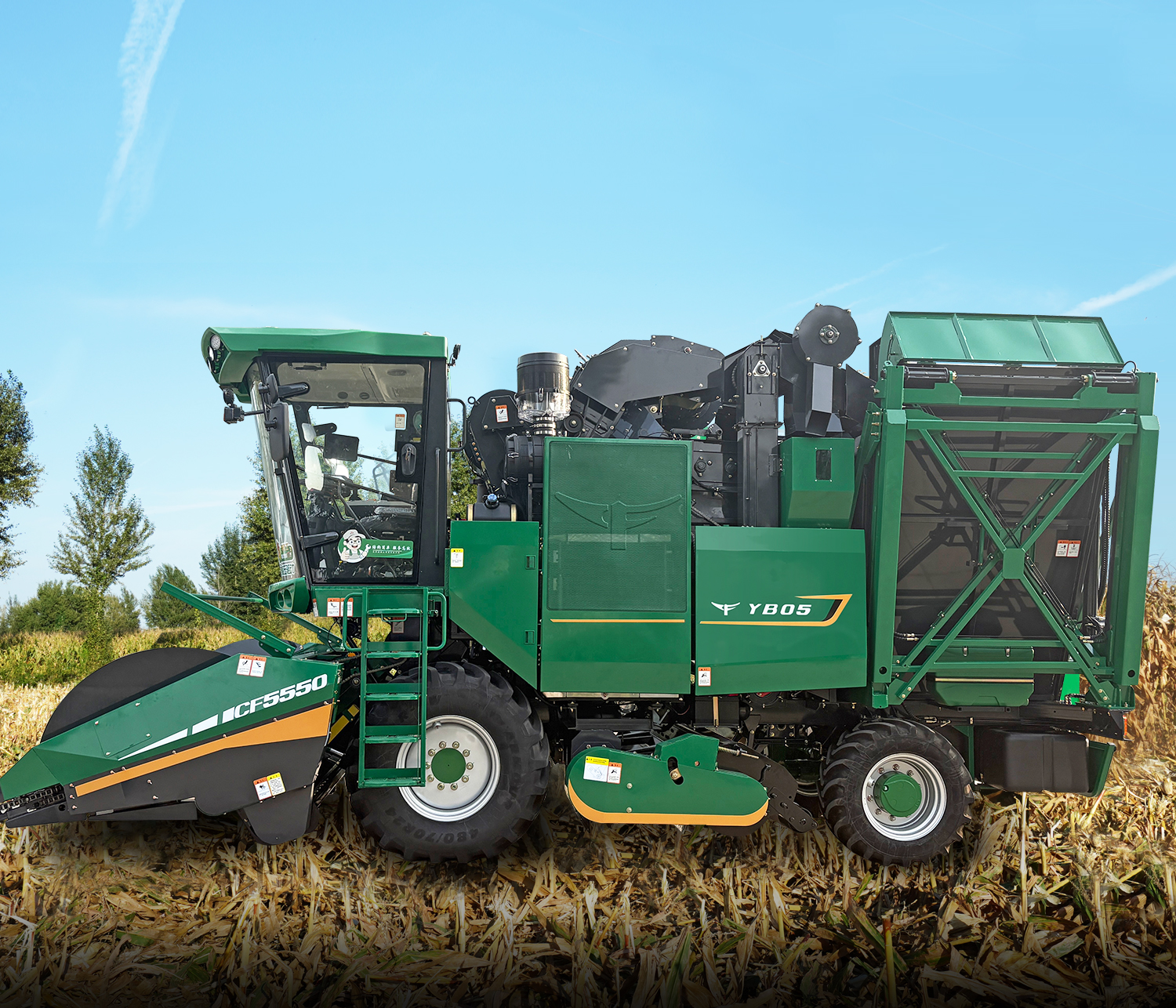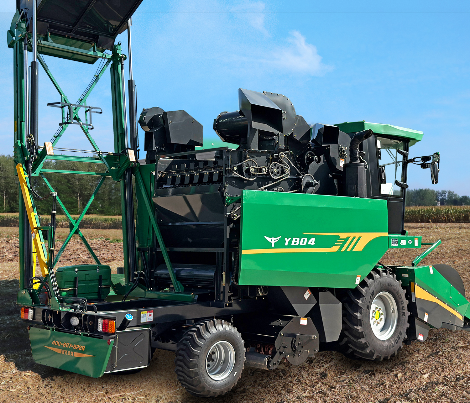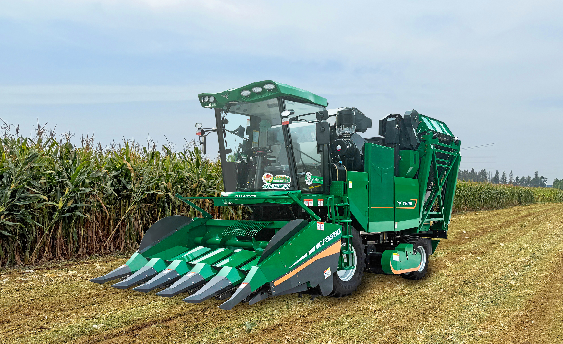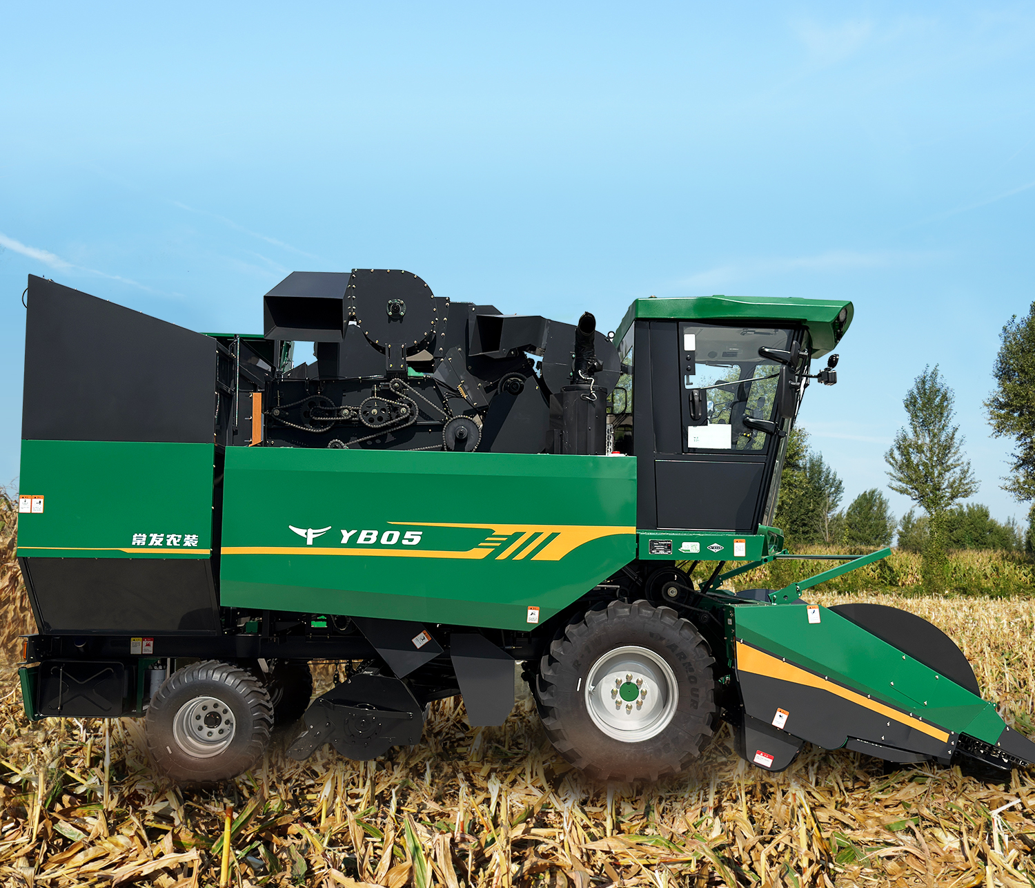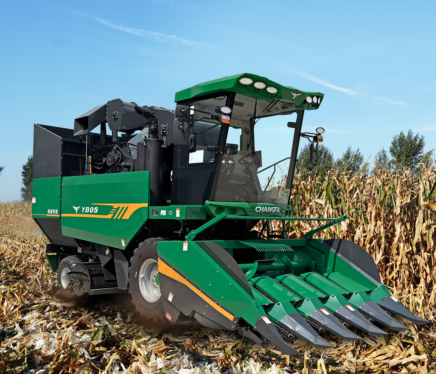 割台采用对刀式拉茎辊结构,搭载高品质摘穗箱,配备甩刀式前还田装置,各通道配备独立的安全离合器,有效保护摘穗系统。割台不对行收割,可安装随车附件加长分禾尖,收倒伏效果更好。 标配5组橡胶剥皮辊,采用了优质的橡胶件,耐磨性好,寿命长。