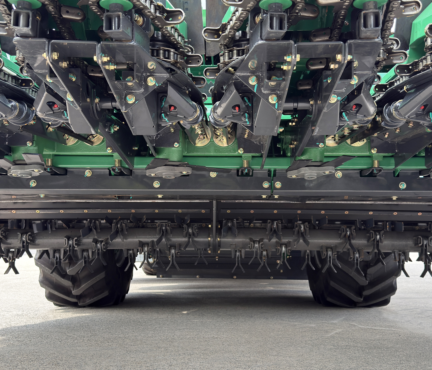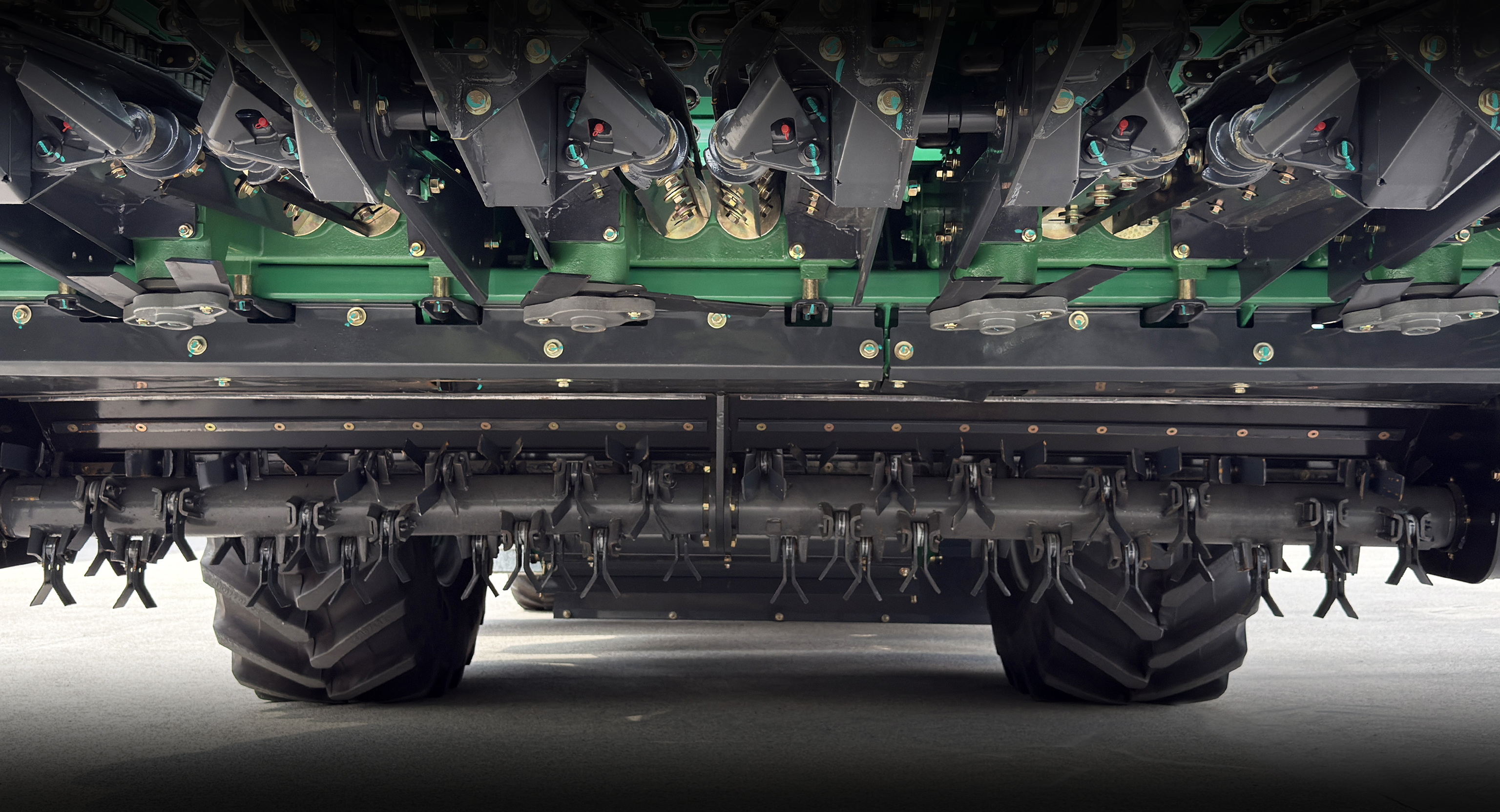 标配静液压驱动,配置直联90CC液压泵、马达+1000系列加强型4挡变速箱+加宽子午胎,兼顾作业与转场工况,作业速度快,转场速度可达40公里/小时;转弯半径5.45米,田间地头更灵活;一体式高强度机架,底盘稳定可靠。